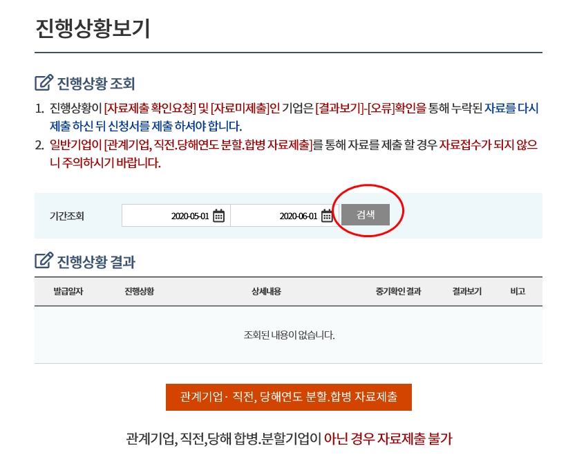 기간을 설정하여 조회하면 진행상황을 알아볼수 있습니다.
