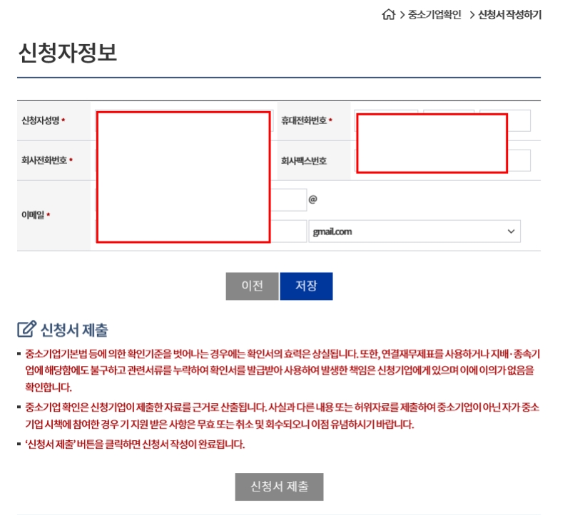 신청자 인적사항을 기입후 저장하여 제출하면 됩니다.