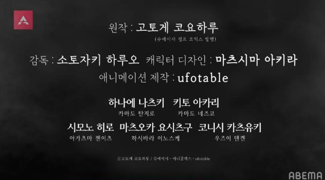 원작 : 고토게 코요하루, 감독 : 소토자키 하루오, 캐릭터 디자인 : 마츠시다 아키라, 애니메이션제작 : ufotable