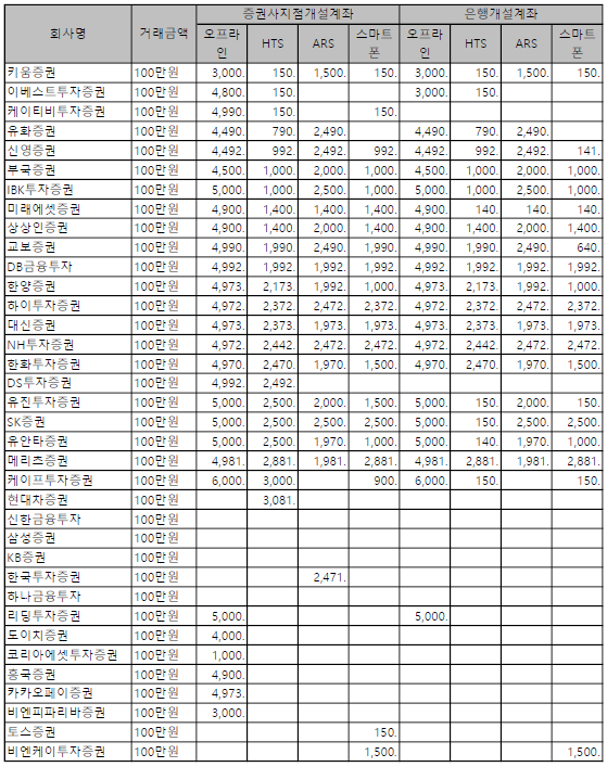 비교조건으로는 기준금액 100만원으로 적용된 것이니 참고하셔서 본인에게 적합한 증권사를 선택해 보시기 바랍니다.