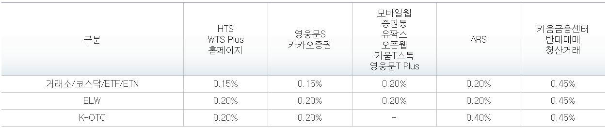 키움증권은 0.15%의 수수료가 적용됩니다.