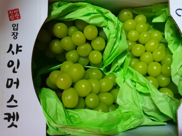 포도 재배에 적합한 기후와 환경 조건을 갖춘 천안 입장면의 거봉 샤인머스캣은 당도가 탁월하게 높다고 합니다.