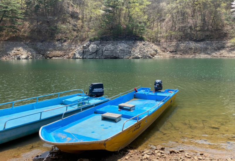 강원도 화천 비수구미 민박집 강변민박은 선착장에서 보트로 이동합니다.