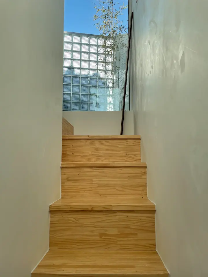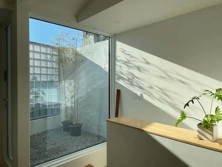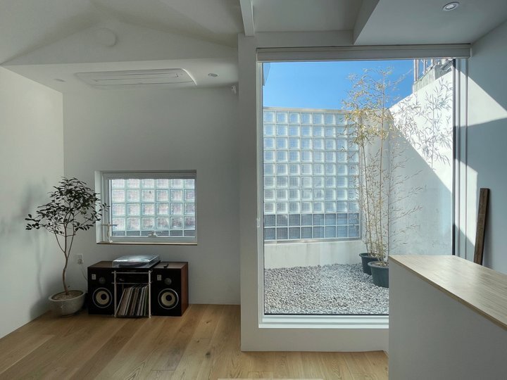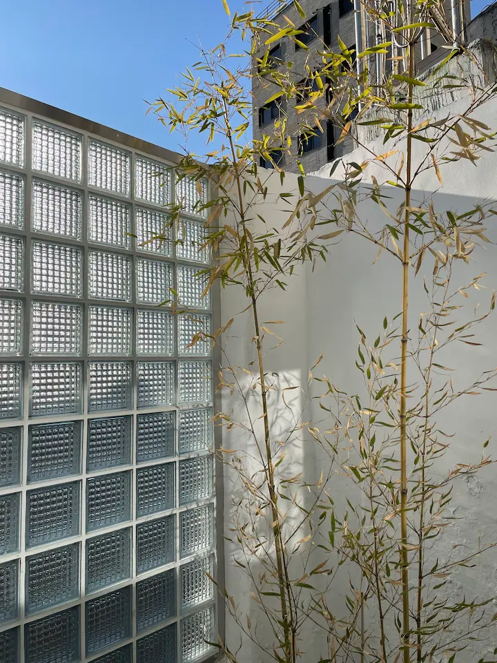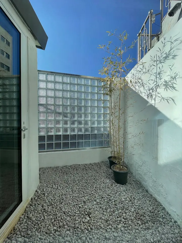 마당의 바닥을 무엇으로 할지도 고민이 많았습니다. 원래 마당 공간은 이전 주인이 오래전부터 불법 확장해서 화장실로 쓰고 있었던 만큼 레트로한 타일이 바닥에 붙어있었습니다. 그래서 그 타일을 그대로 두고 마당을 꾸며보려 했는데, 타일과 바닥이 깨져서 1층 천장으로 물이 새어 들어오고 있었습니다. 어쩔 수 없이 타일을 포기하고 방수공사를 한 뒤에 화산석으로 가득 채우고 대나무를 놓아 차분한 느낌을 주었습니다. 대나무도 양재 꽃 시장에서 사온 아이들인데 화단을 만들고 싶었지만 오래된 집의 골조에 대나무 뿌리가 손상을 입힐까 봐 차마 시도하지 못하고 화분으로만 두었습니다.