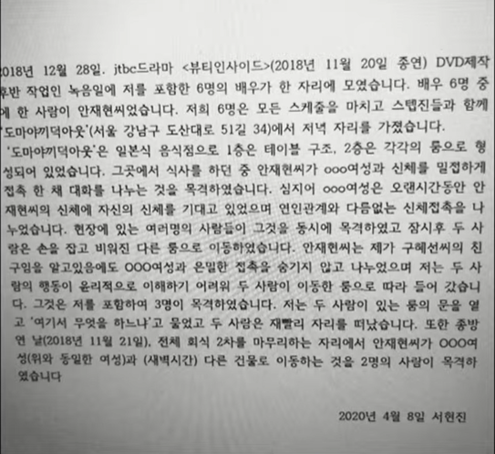 유튜브 가로세로연구소에서는 5월3일 방송에서 이 사실확인서를 공개했는데 불륜사실확인서로 일컬어진 이 문서의 말미에는 작성자가 서현진으로 적혀 있었습니다.