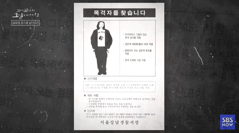 약 1년전의 이런 사건들을 기억해낸 지혜양의 아버지는 이 모든 일들을 경찰에 알렸지만 경찰은 일단 성인의 실종이므로 가출신고를 해놓고 기다려 보자고 합니다.