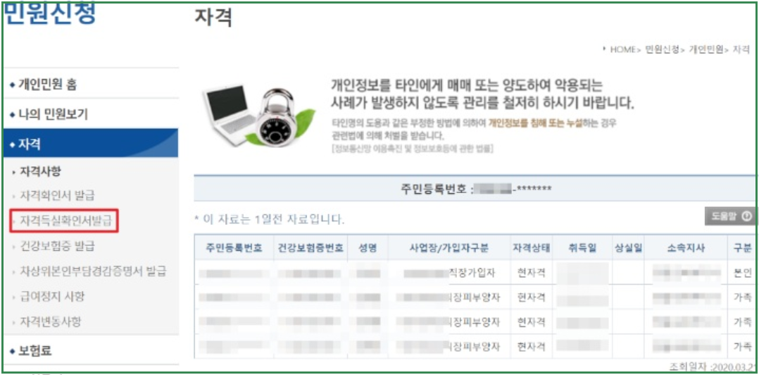 건강보험 자격득실 확인서는 사회보장보험인 국민 건강보험 제도에 직장가입자나 지역가입자 또는 피부양자 등 어떠한 신분으로 가입되어 있는지를 확인할 수 있는 서류로 주로 금융기관이나 취업, 이직 등을 할 때 제출요구를 받는 경우가 많습니다.