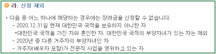 근로장려금과 자녀지원금 신청은 국적 미보유자 등 아래에 해당하는 경우는 제외사항이니 참고바랍니다.