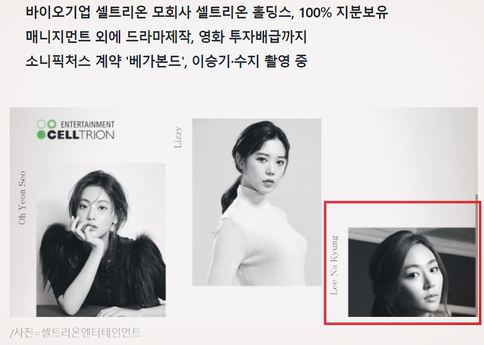 현재 셀트리온 엔터테인먼트 홈페이지에 올라와 있는 연예인은 아래가 전부입니다.