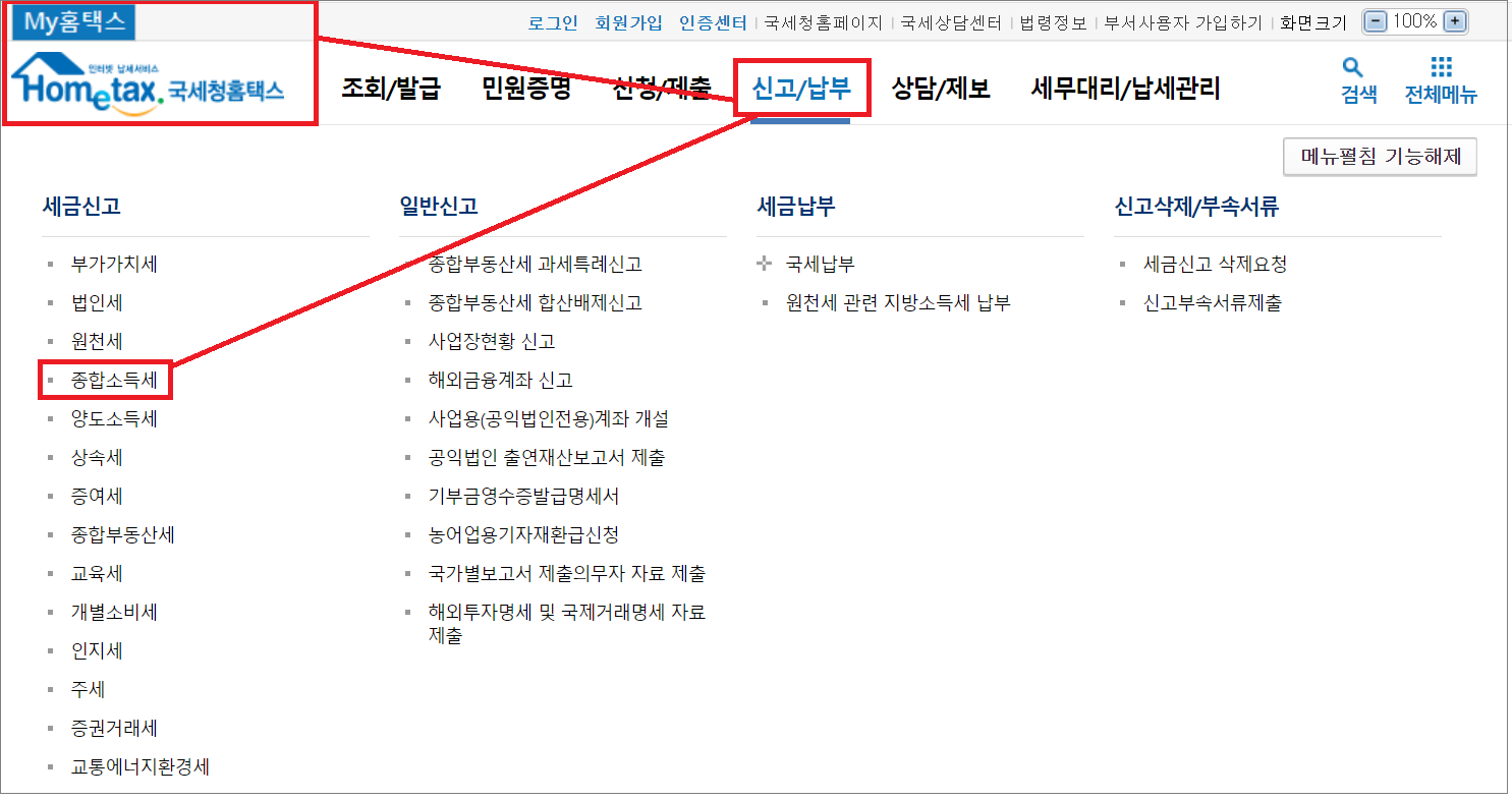 ▼종소세 신고 국세청 홈택스 홈페이지▼