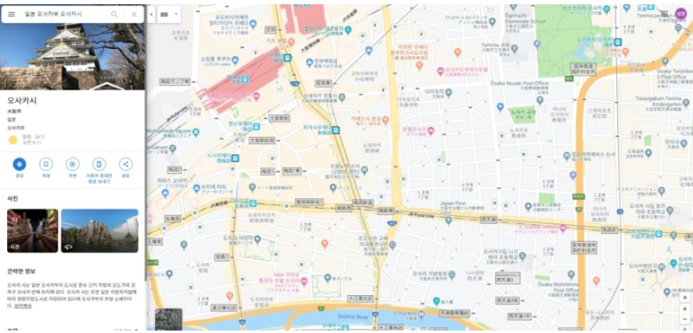 구글 맵 역시 동일한 구글 지도를 베이스를 보여주고 있고 언어만 다를뿐 똑같은 정보를 나타내고 있는 것을 확인할 수 있습니다.