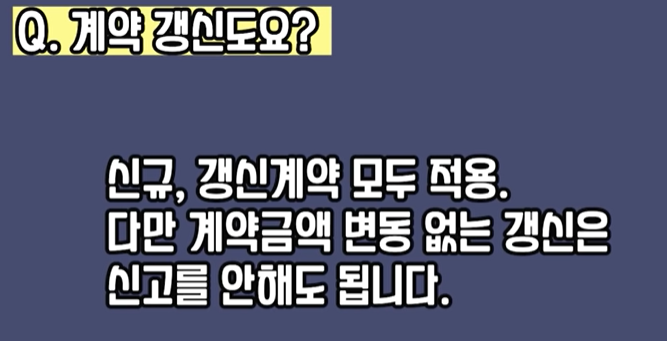 단, 이미 전월세 신고된 금액과 동일하게 갱신계약을 하는 경우에는 신고하지 않아도 됩니다.