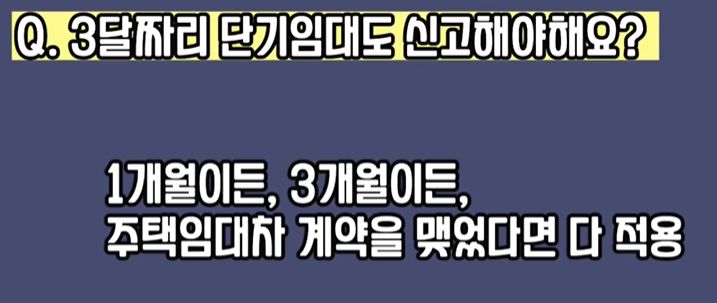 임대계약의 기간과는 상관없이 1개월이든 3개월 계약이든 주택임대차 계약을 했다면 모두 신고해야 합니다.