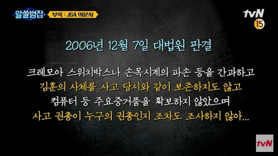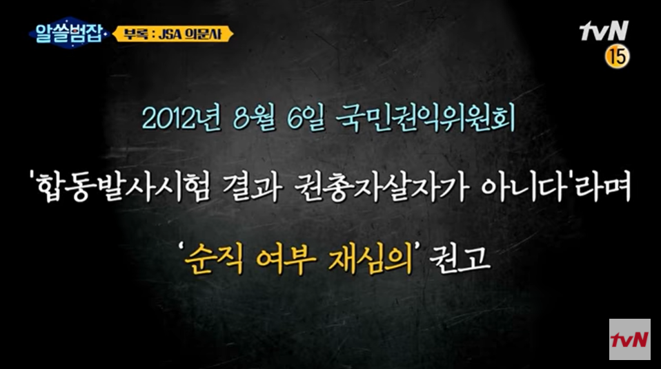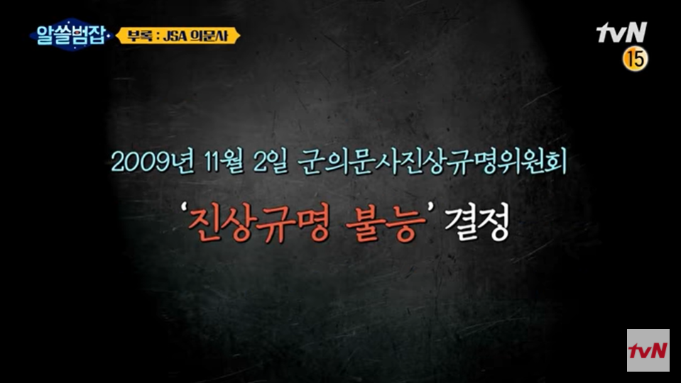 마침 최근 알쓸범잡에서 JSA의문사 김훈중위사건을 다루었기에 해당 편의 방송 장면 소개해 드립니다.