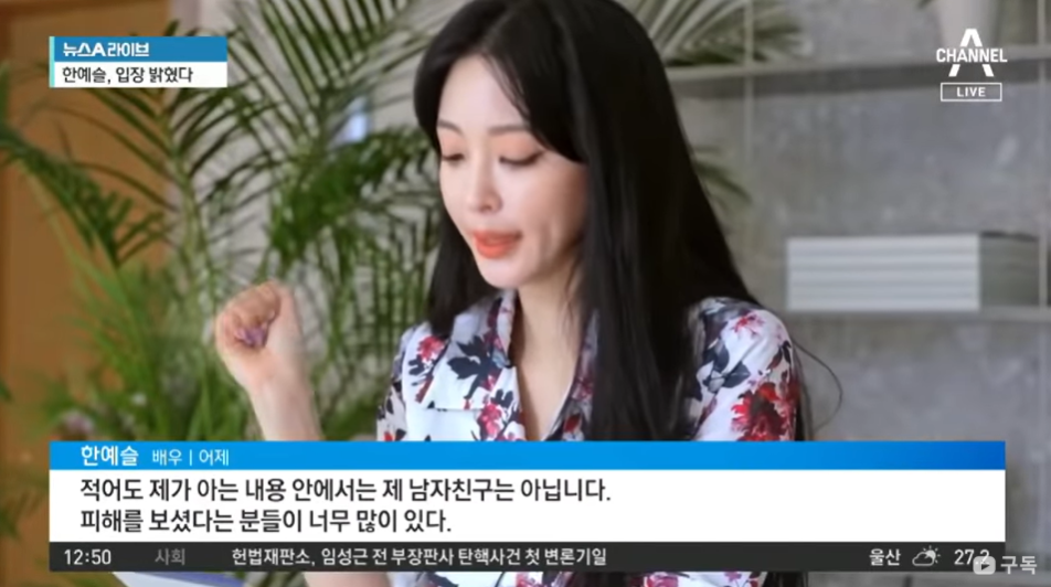 게다가 한예슬이 자신있게 덧붙이기를 자기의 남친에게 피해를 입은 사람이 있다면 신고해서 법정에서 밝히자고 피해자가 있다면 고소해 줄 것을 호소하였습니다.