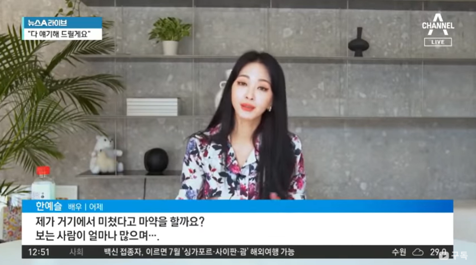 버닝썬에 대해서도 한예슬은 딱 한번 가봤을 뿐 마약을 하지도 않았고 침을 질질 흘린 여배우도 아니라고 부인하였습니다.