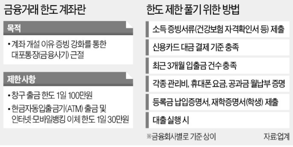일부 은행은 한도 제한 계좌 해제를 위해 대출을 일으켰다가 바로 되갚는 방법 등이 노하우로 공유되고 있기도 합니다.