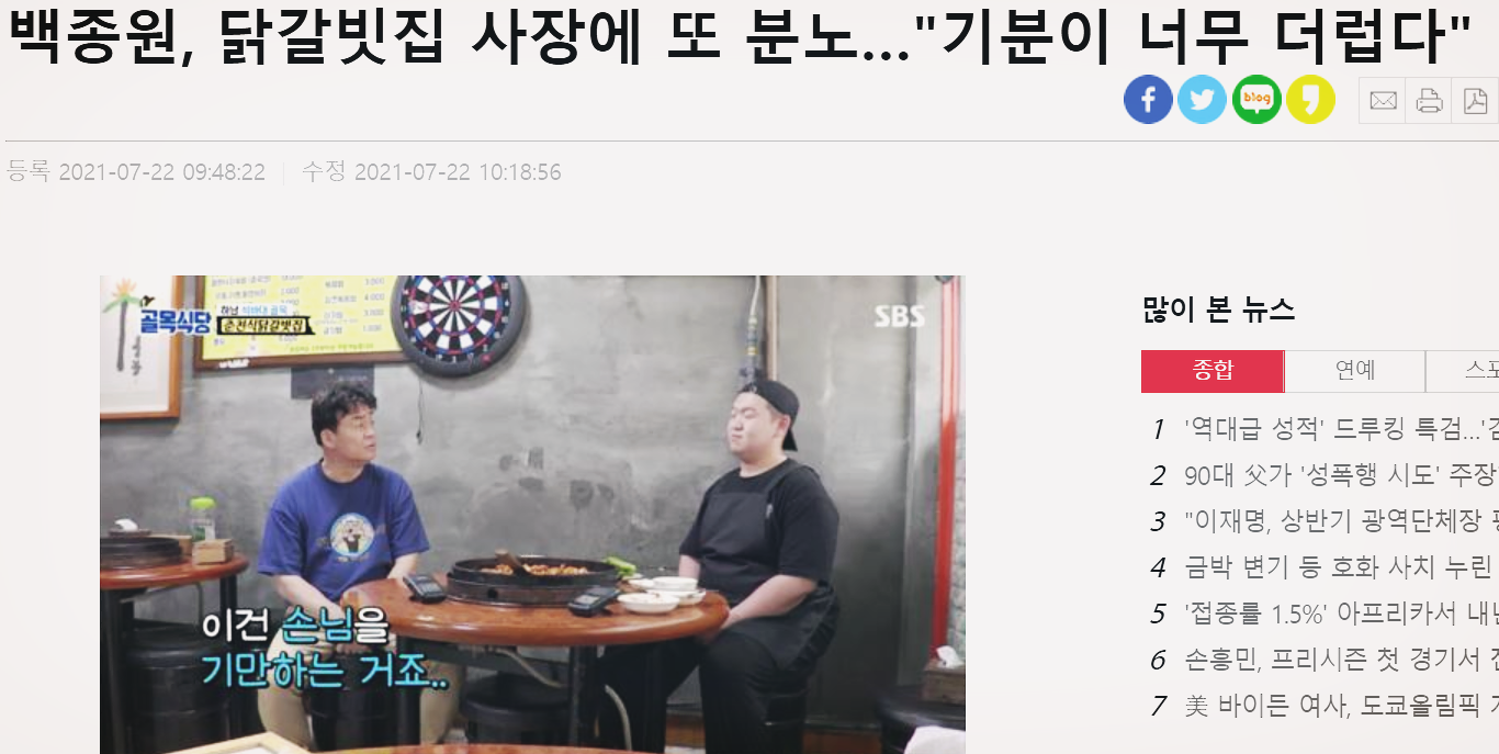 백종원 닭갈비집 사장에 기분이 더럽다 분노